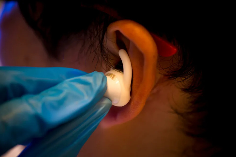 印刷大脑活动传感器,入耳式。(图片来源:加州大学圣地亚哥分校)