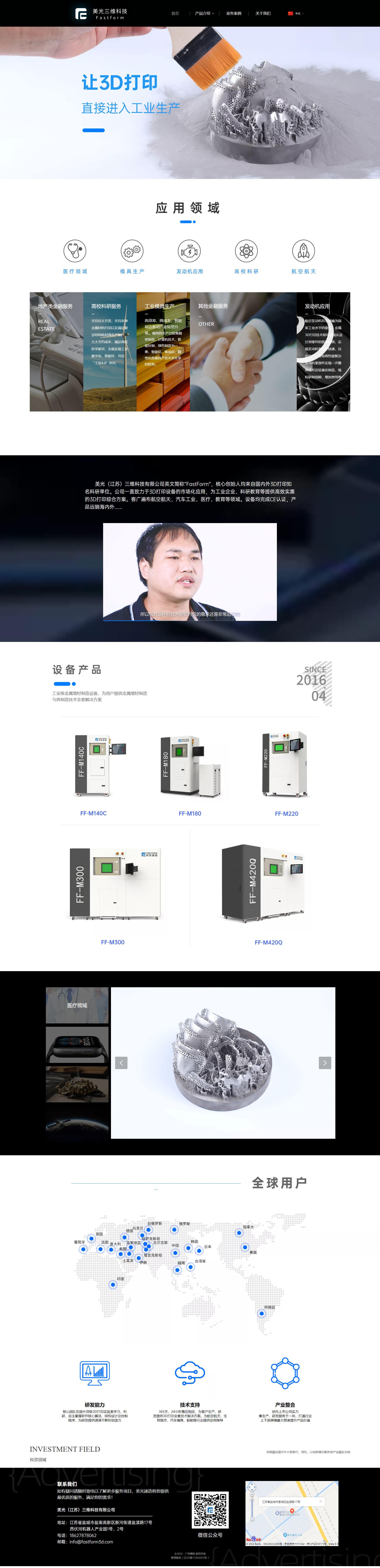 美光(江苏)三维科技有限公司英文简称“FastForm”,成立于2016年4月,核心创始人均来自国内外3D打印知名科研单位。公司一直致力于3D打印设备的市场化应用,为航空航天、高性能工业制造、模具制造、精准医疗等领域提供专业的增材制造应用解决方案。设备均完成CE认证,远销欧美、日韩、东南亚等50多个国家和地区。